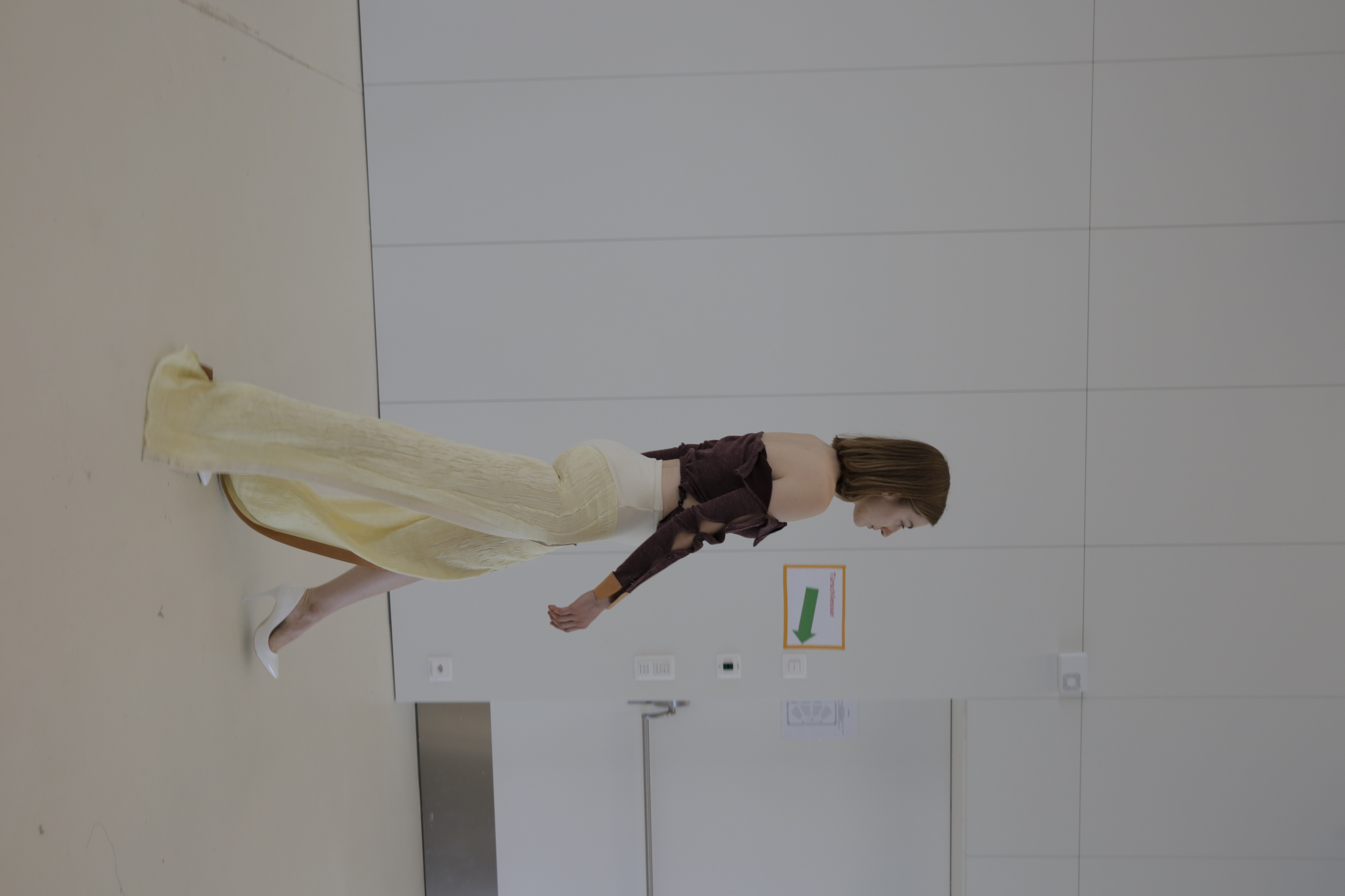 Each model wears a bodysuit as a base. It is accompanied by a garment designed according to her wishes. It has been created through close collaboration with the model. Concrete but also abstract wishes have been discussed together. Fabrics, colour samples, texts, pictures, idols, etc. serve as material visualization. Without putting my own wishes and intentions aside, I took those of my counterparts as a base to fulfill their dream.